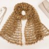 Dei fili di poliestere metallizzato oro illuminano ed impreziosiscono la sciarpa.
