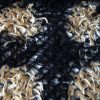 È una lana sottile molto morbida, con riquadri beige su fondo nero.