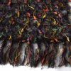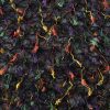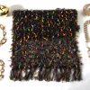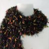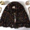 Questa sciarpa nera dal filato sottile ed elaborato è rallegrata da minuscoli pom pon colorati che sembrano quasi coriandoli.