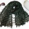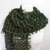Dei fili di poliestere metallizzato verdi/oro illuminano ed impreziosiscono la sciarpa.